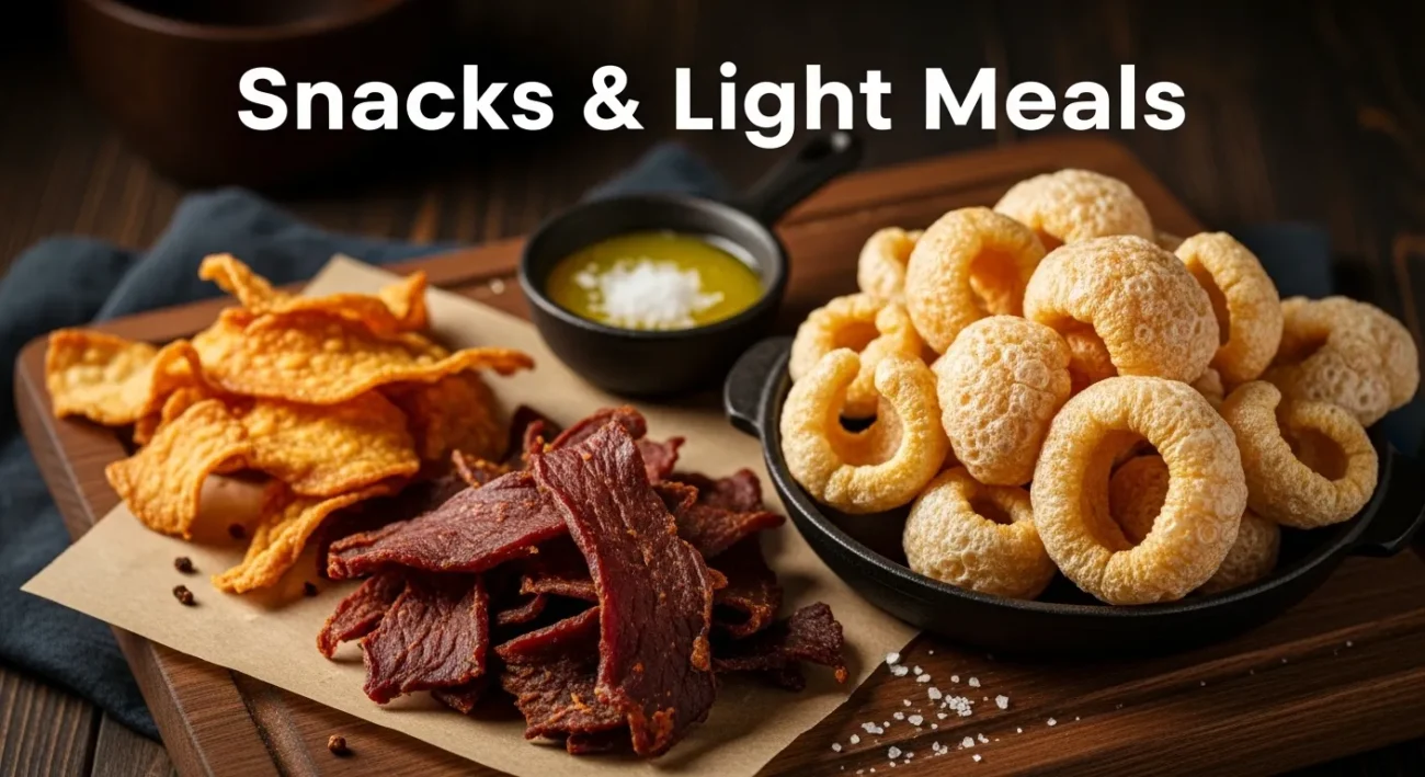 | Snack / Light Meal | Pork Rind Cracklings | Crisp pork skin as crunchy snack |