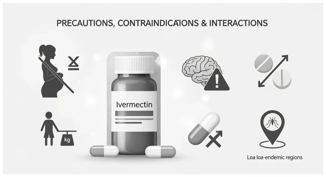 - Pediatric use: Data are limited under 15 kg, so many guidelines caution or avoid ivermectin in children below that weight.