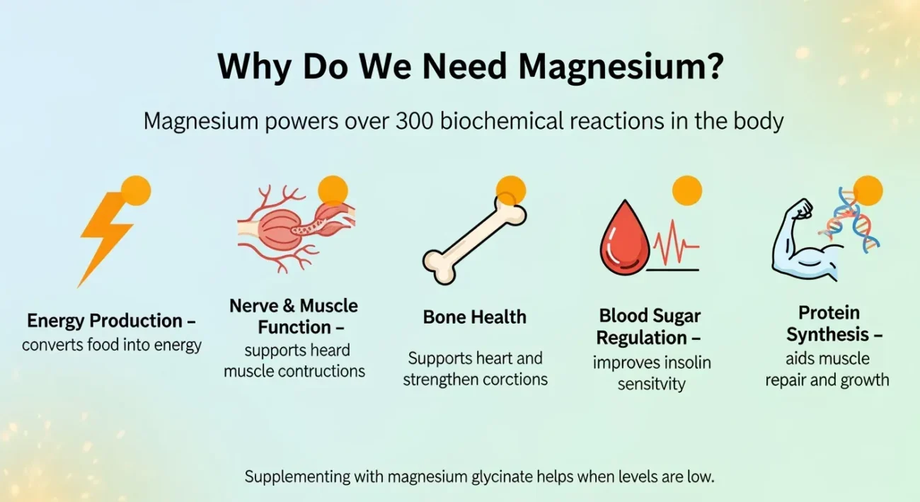Before diving into the specific benefits of magnesium glycinate, it’s important to understand why magnesium is so important for our overall health.