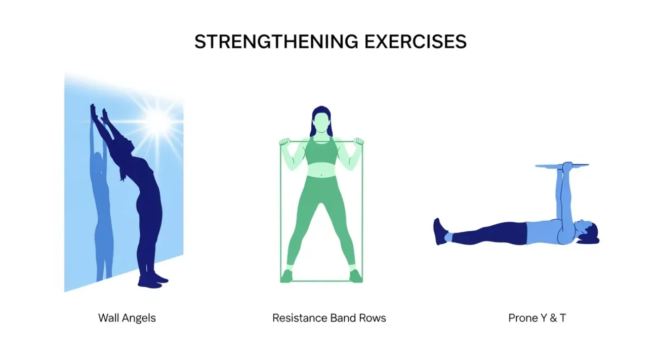 | Poor posture | Weakens or overloads the muscles of the upper back and neck from prolonged slouching, desk work, or smartphone use. | • Tension, muscle imbalances, and pain • Contributes to rounded shoulders and a forward head posture |