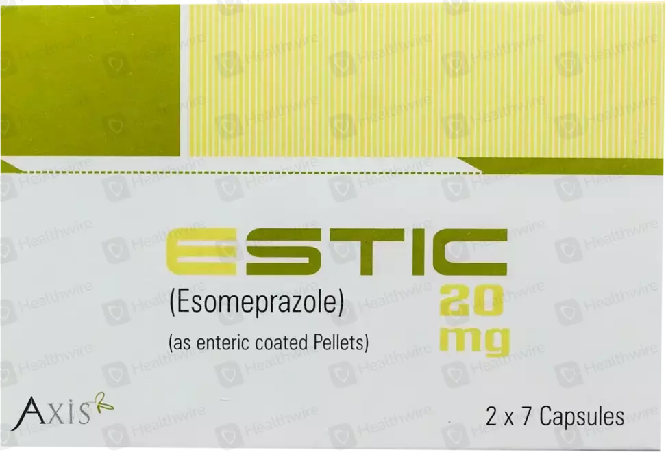 Esomeprazole is used to treat the symptoms of gastroesophageal reflux disease (GERD). Esomeprazole is used to allow the esophagus to heal and prevent further damage to the esophagus in adults with GERD. Esomeprazole is also used to decrease the chance of developing ulcers in adults. Esomeprazole is used to treat and prevent the return of stomach ulcers caused by a certain type of bacteria (H. pylori) in adults. Esomeprazole is used to treat frequent heartburn in adults. Esomeprazole is in a class of medicines called proton pump inhibitors. Esomeprazole works by decreasing the amount of acid made in the stomach.