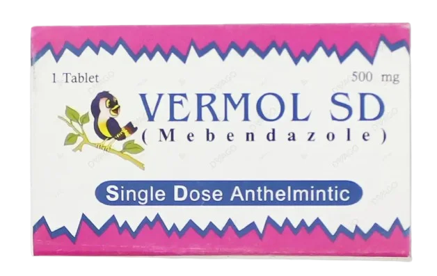 Vermol SD 500mg Tablet contains Mebendazole, a powerful deworming agent used to eliminate intestinal parasites. It works by blocking the worms’ ability to absorb glucose, causing them to lose energy and die naturally inside the intestines. The dead worms are then expelled through stool without causing discomfort. It is widely used in both adults and children for quick relief from common worm infections like threadworm, roundworm, and whipworm.