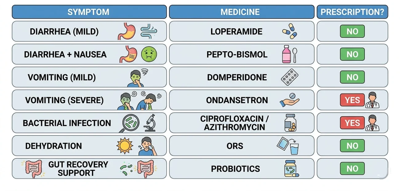 Bacterial diarrhea needs antibiotics to target the infection directly. Commonly prescribed options include ciprofloxacin, azithromycin, and rifaximin, depending on the pathogen involved. Doctor’s call only. Never self-prescribe.